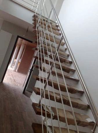 Barandilla de escalera realizada en tubos de acero inoxidable, volada sin zancas